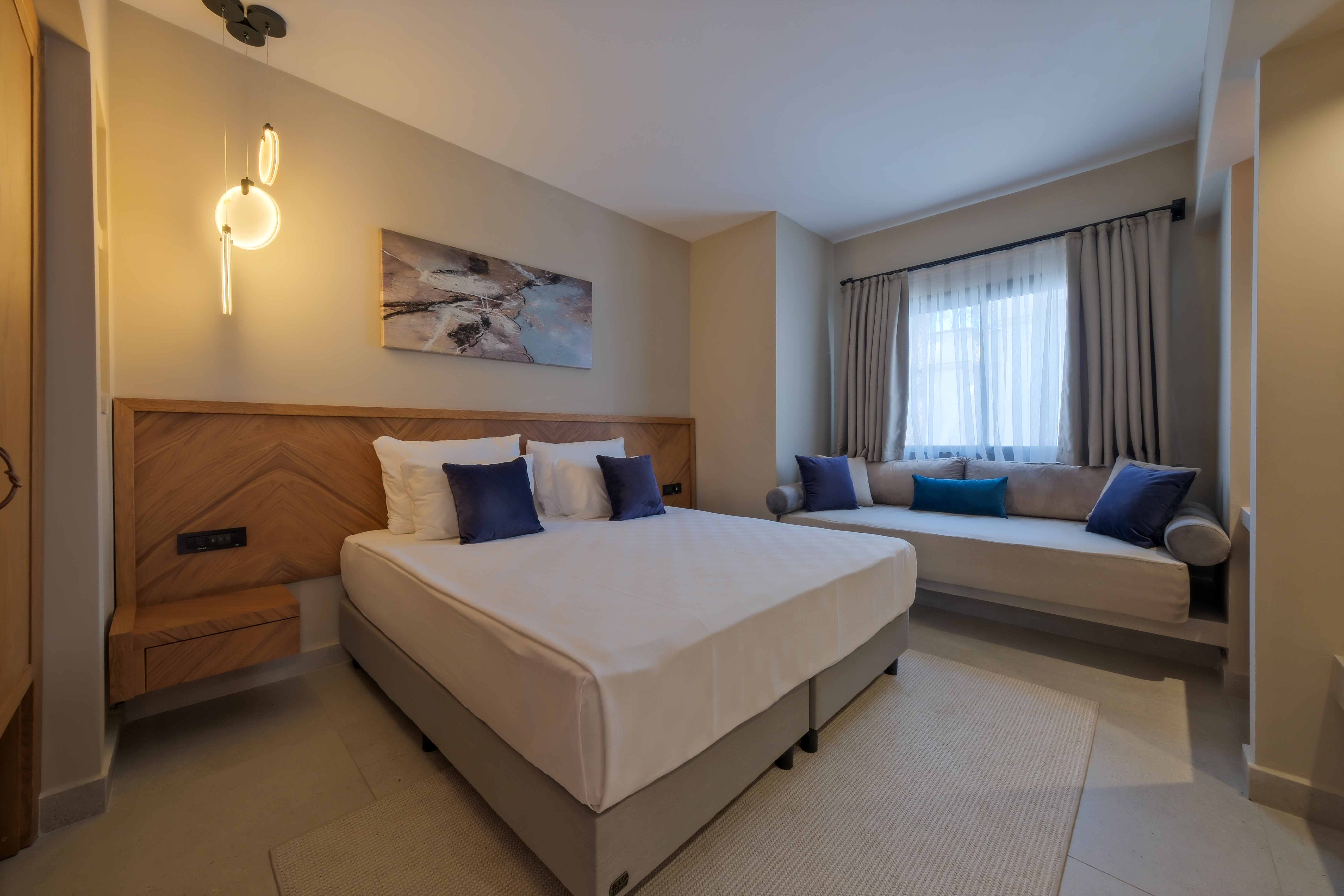 - 8 junior suites (65 м2, гостиная, спальня, только двуспальная кровать, межкомнатная дверь, 2 ванные комнаты, garden view, макс. 2+1 чел.)