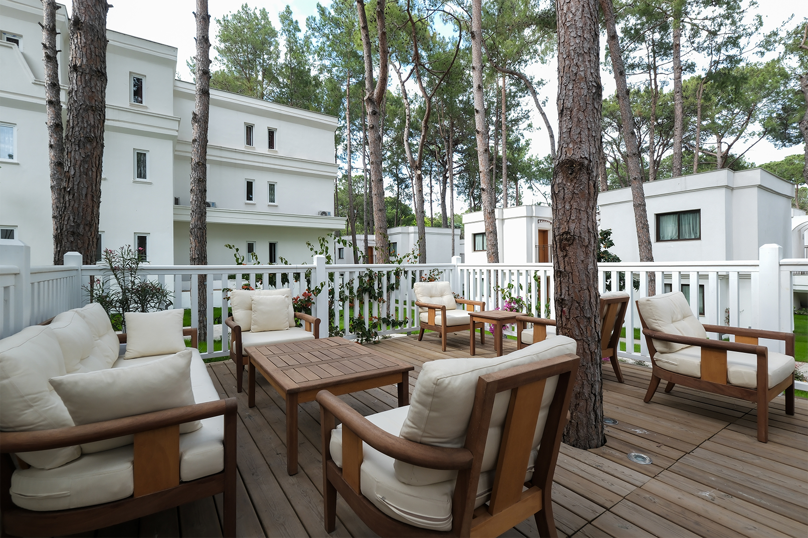 - 6 villas (100 м2, гостиная, 2 спальни, межкомнатная дверь, кухня, 2 ванные комнаты, garden view, макс. 4+1 чел.)