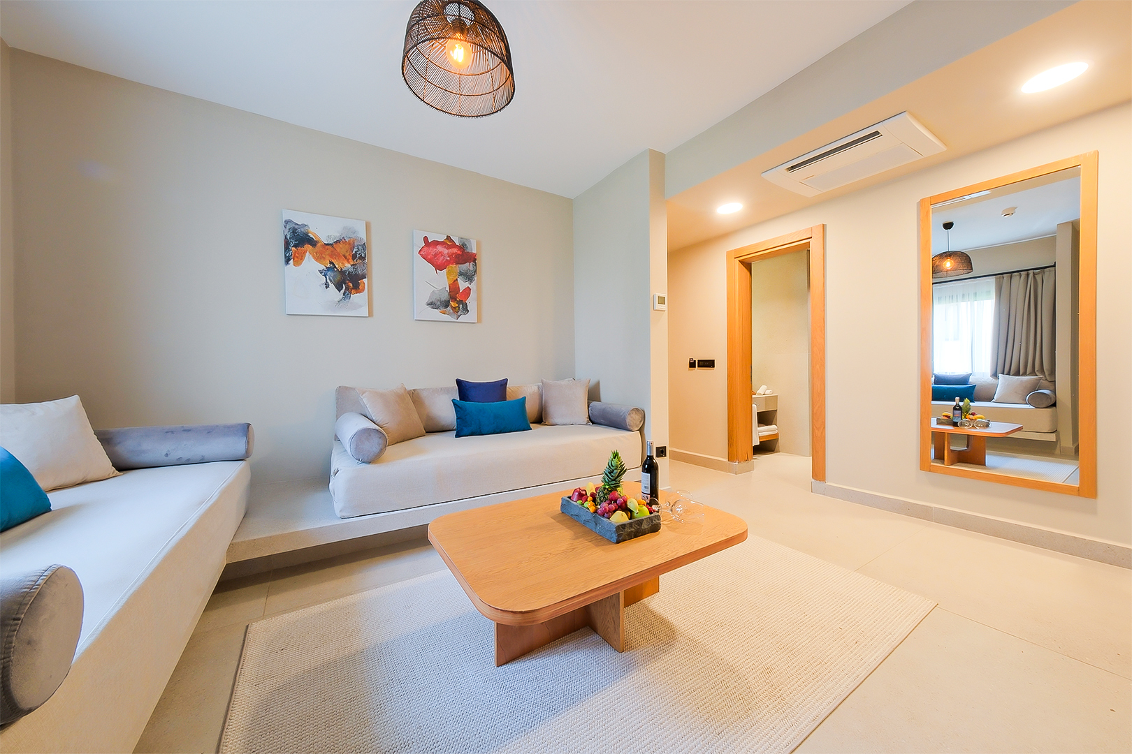 - 26 senior suites (70 м2, гостиная, 2 спальни, межкомнатная дверь, 1 ванная комната, garden view, макс. 4+1 чел.)